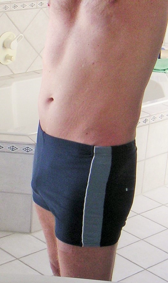 Den Bauchvorbau habe ich reduziert, und meine neckische Hüftspeckrolle hat sich auch verkleinert. All das ist von Vorteil für meine Badehosenfigur-fehlt nur noch der Sommer.