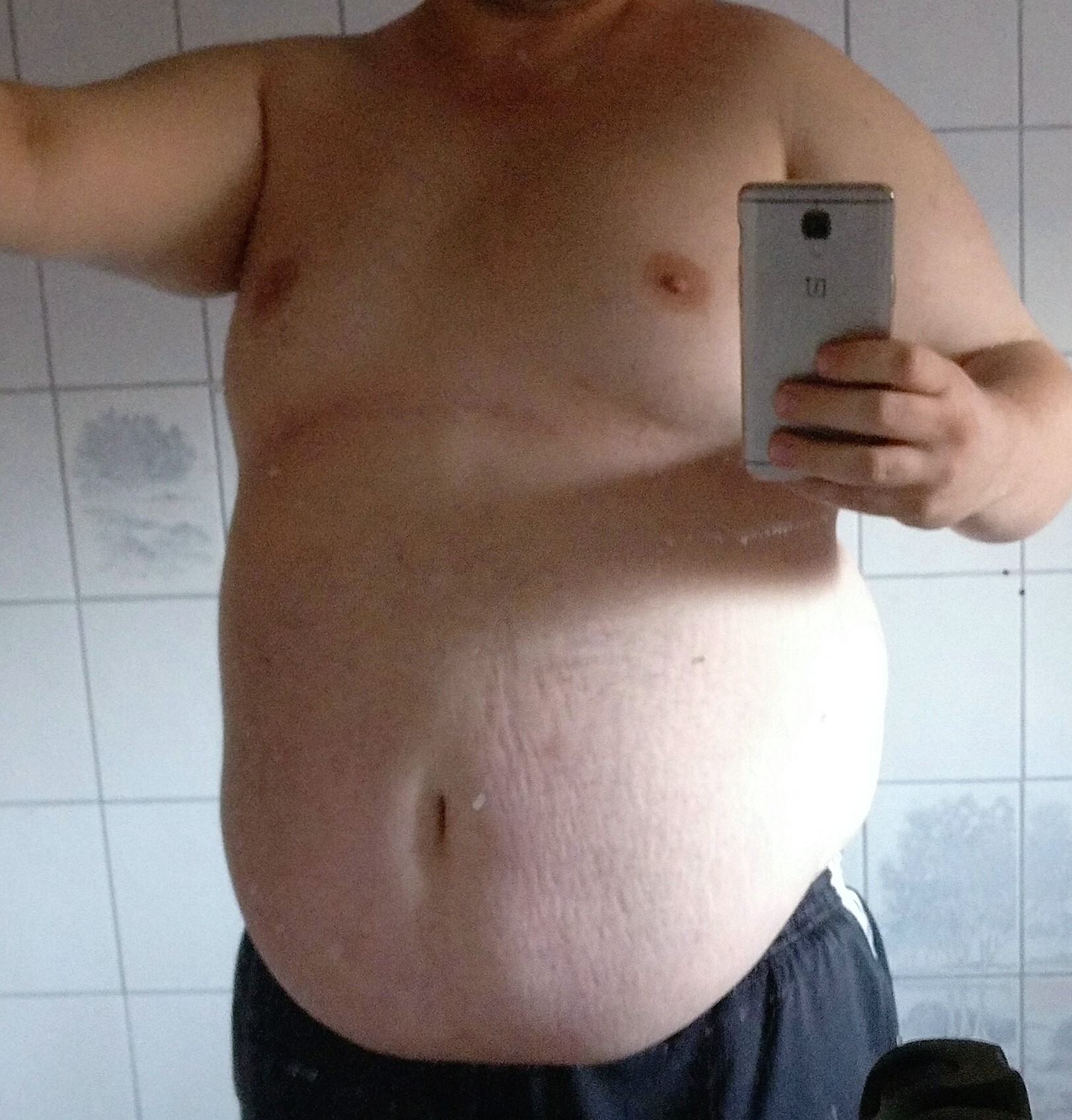 Wenn der Bauchnabel auf der Höhe vom Hosenbund angekommen ist, dann ist der Bauchüberhang perfekt.