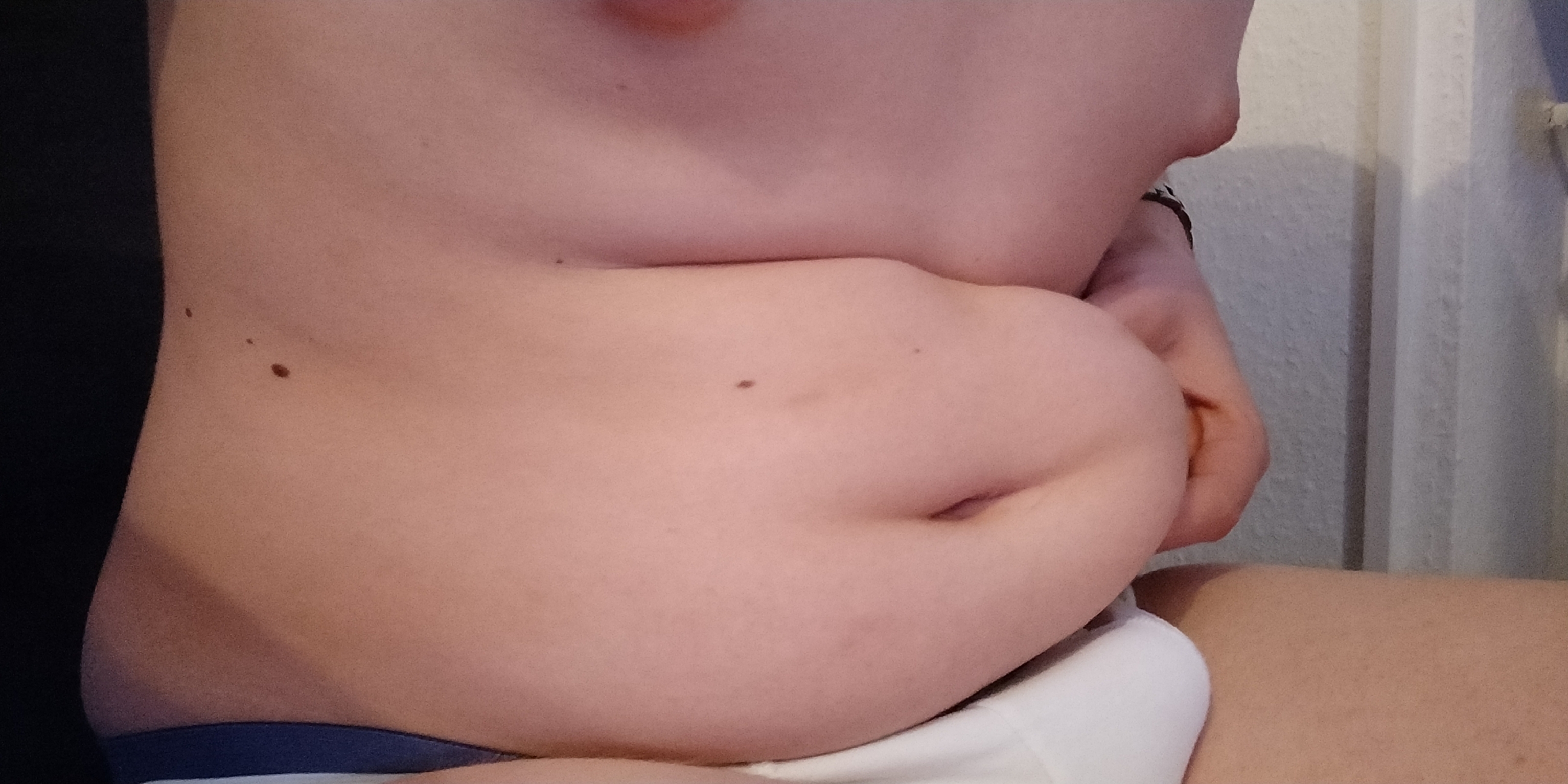 klasse schön zugenommen weiter so hast nen schönen speckbauch und nen süßen bauchnabel