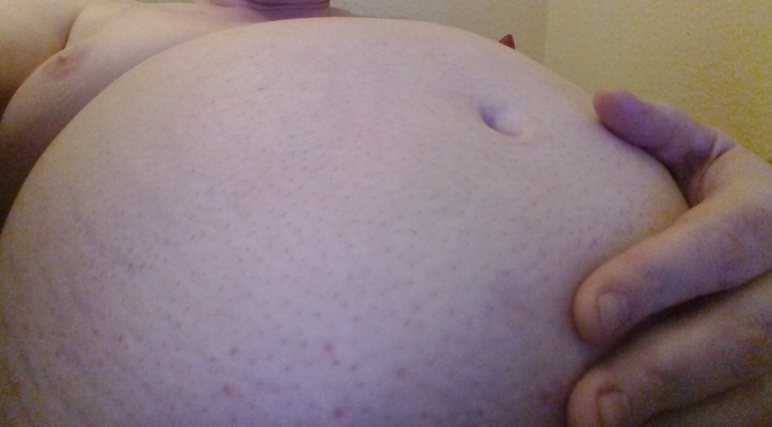 Mein Bauch nach einem exzellenten Mahl - drei große Portionen.... oink oink