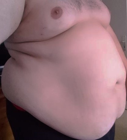 Am Wochenende wird die fette Speckwampe immer rasiert, damit sich der Geschmack verbessert beim Kuscheln.
