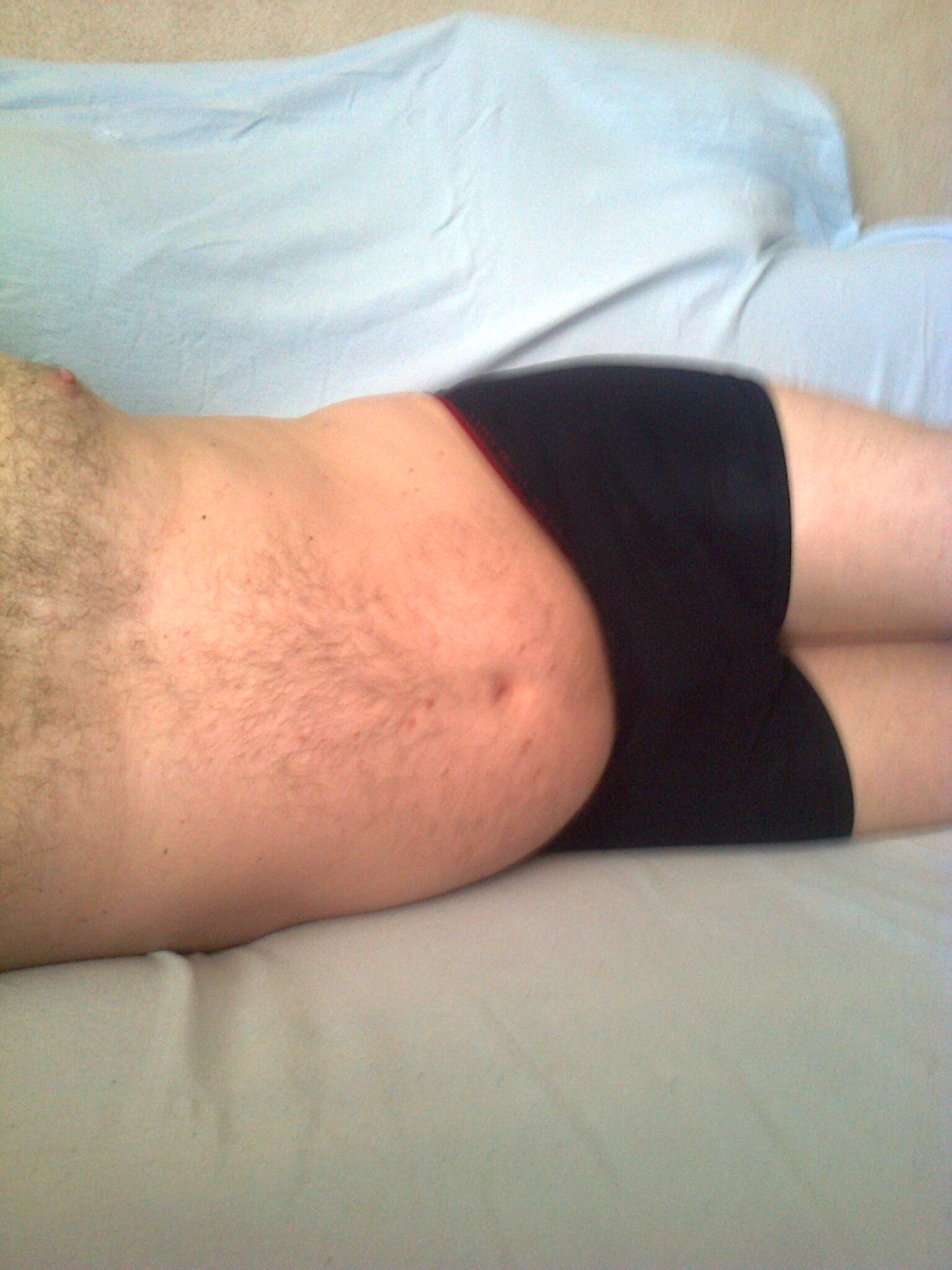 Schön wie der Speck seitlich hängt und über die Unterbuxe quillt, du siehst irgendwie weicher aus zwinker .