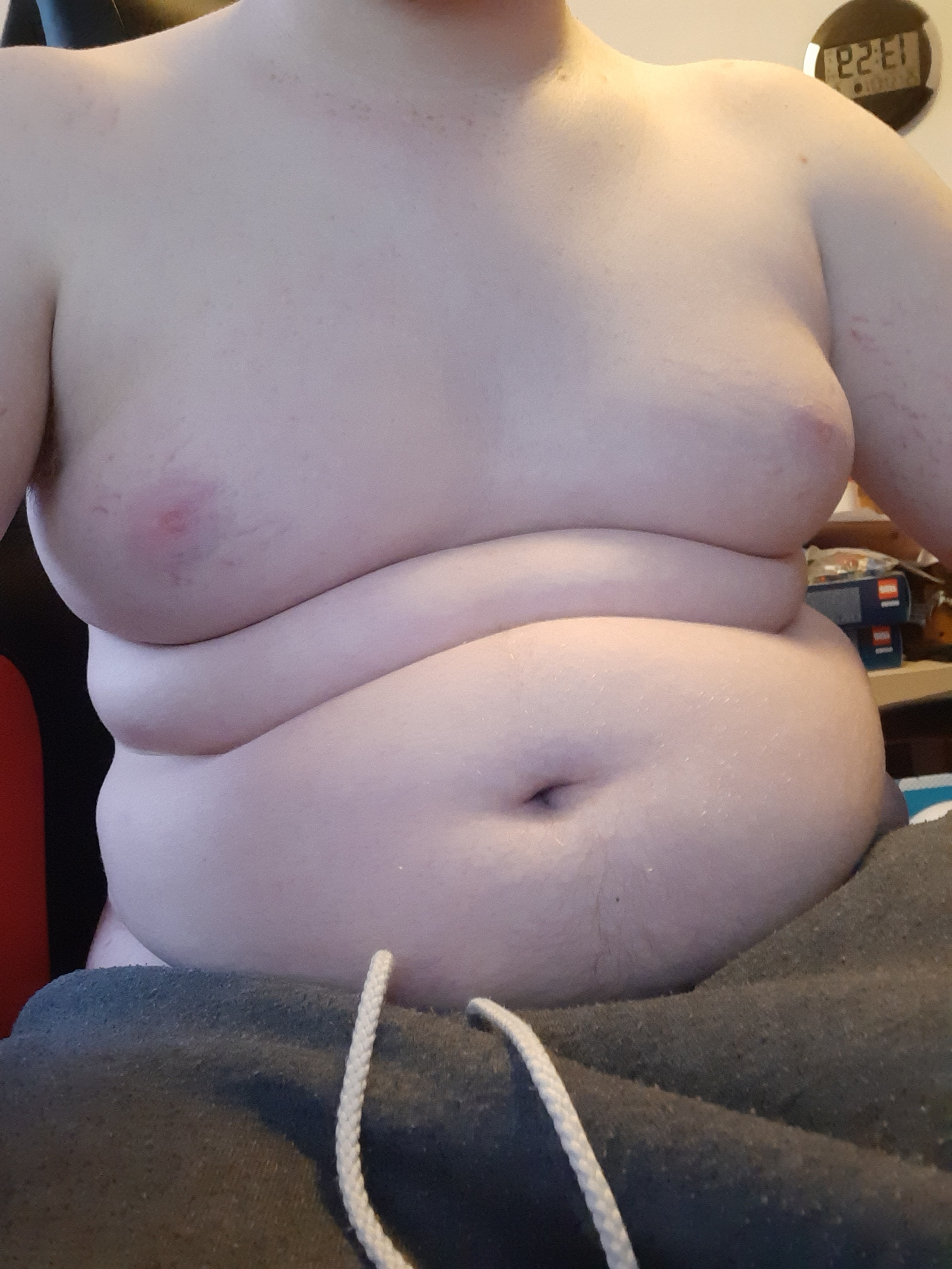 Das Speckröllchen zwischen deinem Bäuchlein und deinen gut gefüllten Brüsten sieht verdammt gut aus.