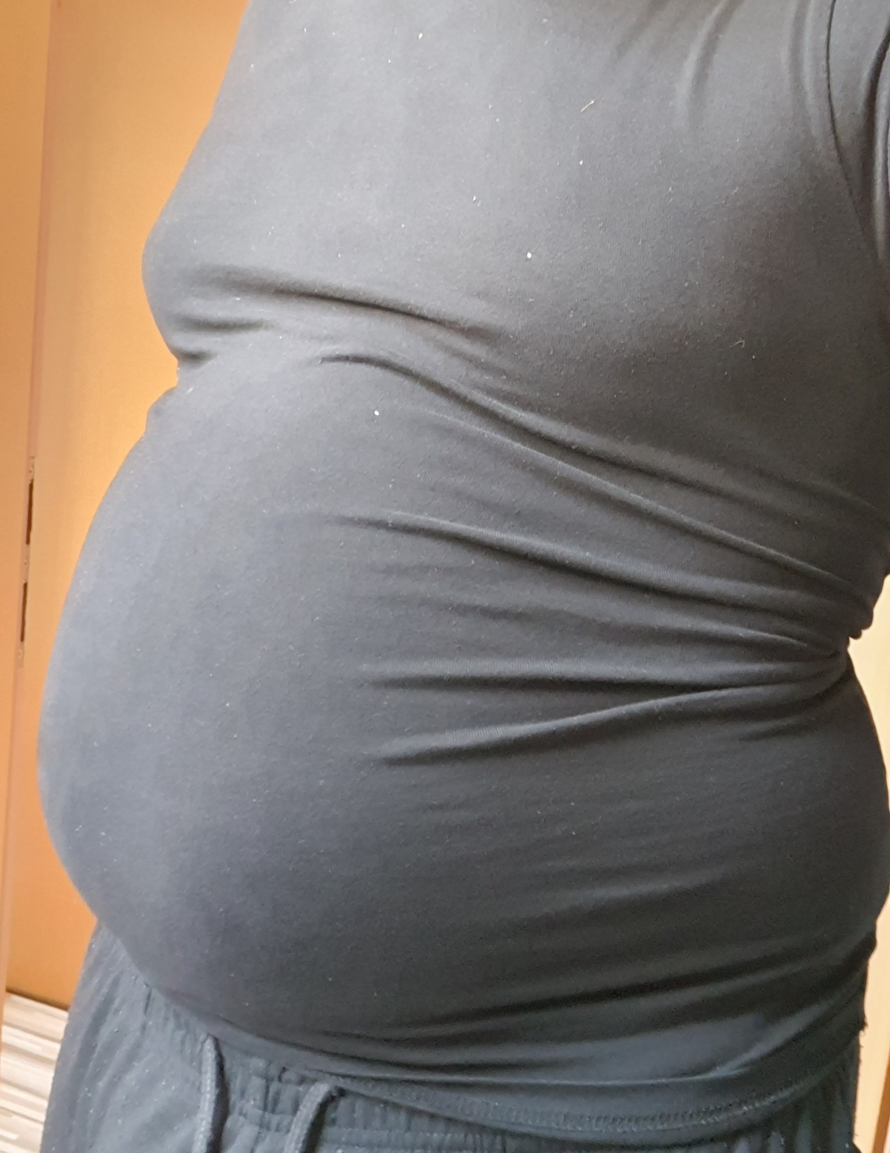 Einfach herzlich wie das Shirt spannt! Mach so weiter und der Bauch fängt an raus zu gucken