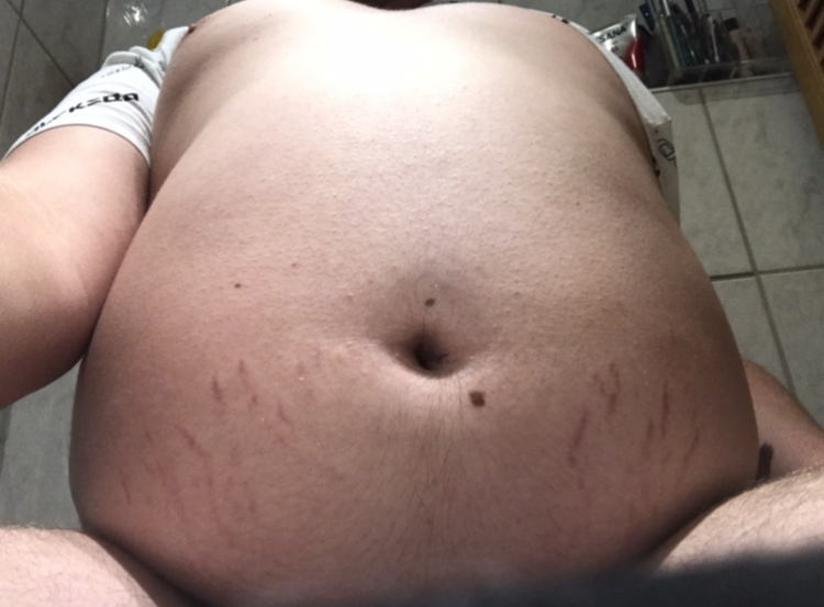 sehr schön das ist gut wenn er weiter wächst. sieht auch super süß aus mit den dehnstreifen und dem süßen bauchnabel