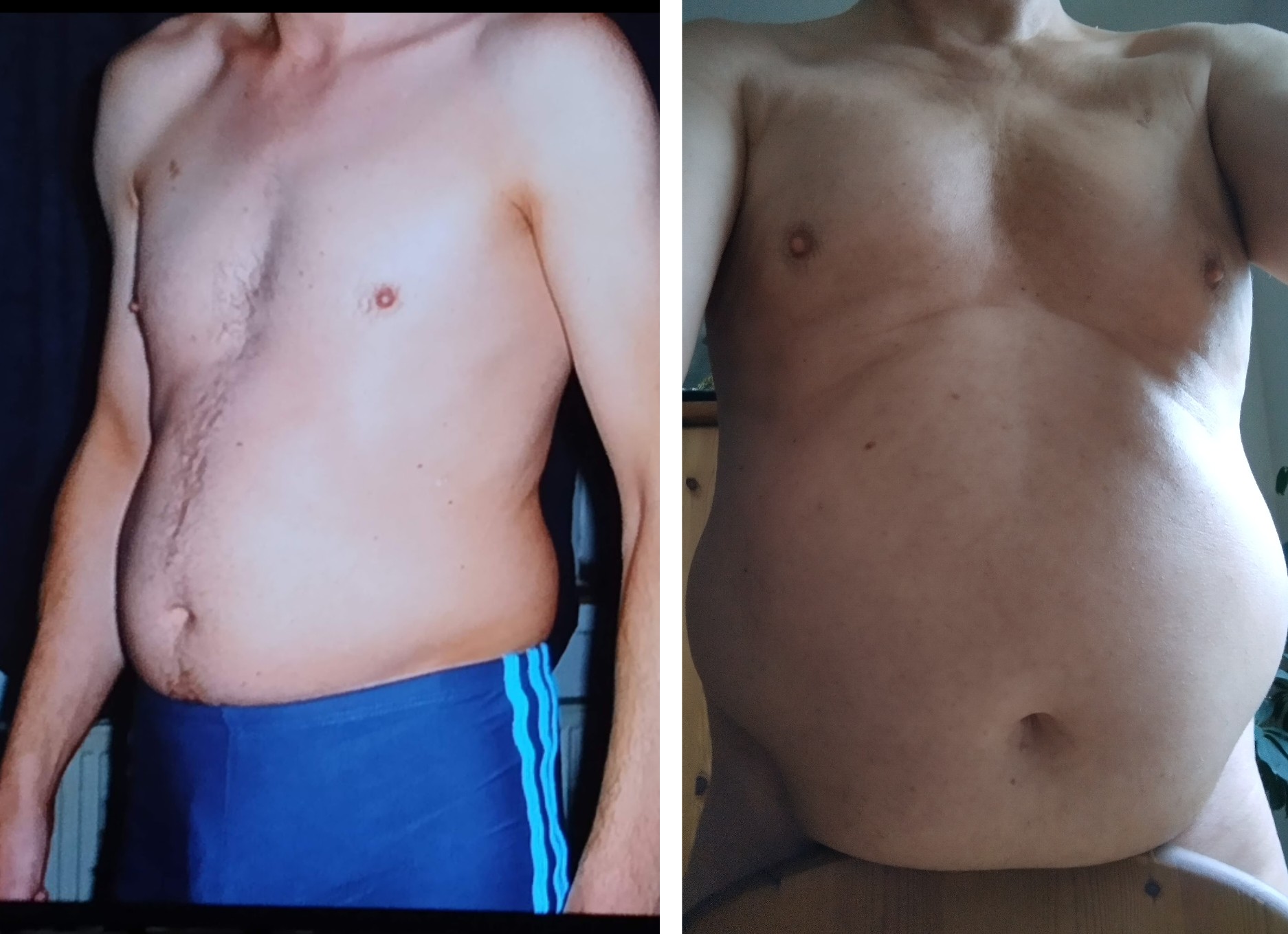 Bauchvergleich von 74 kg zu 111 kg