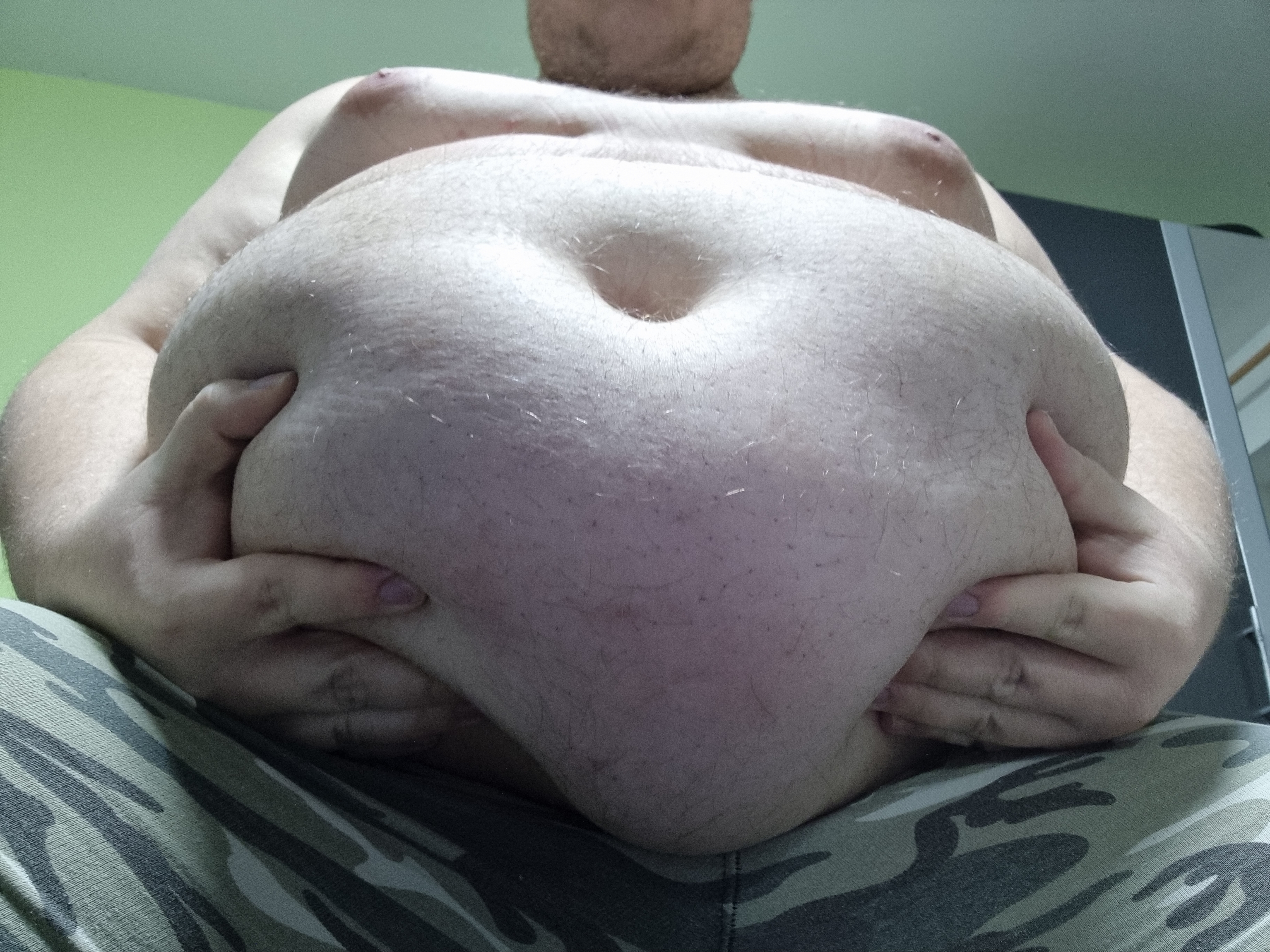Wow dein Bauch ist so geil fett! Da würde ich dich gerne noch füttern und viel fetter machen!