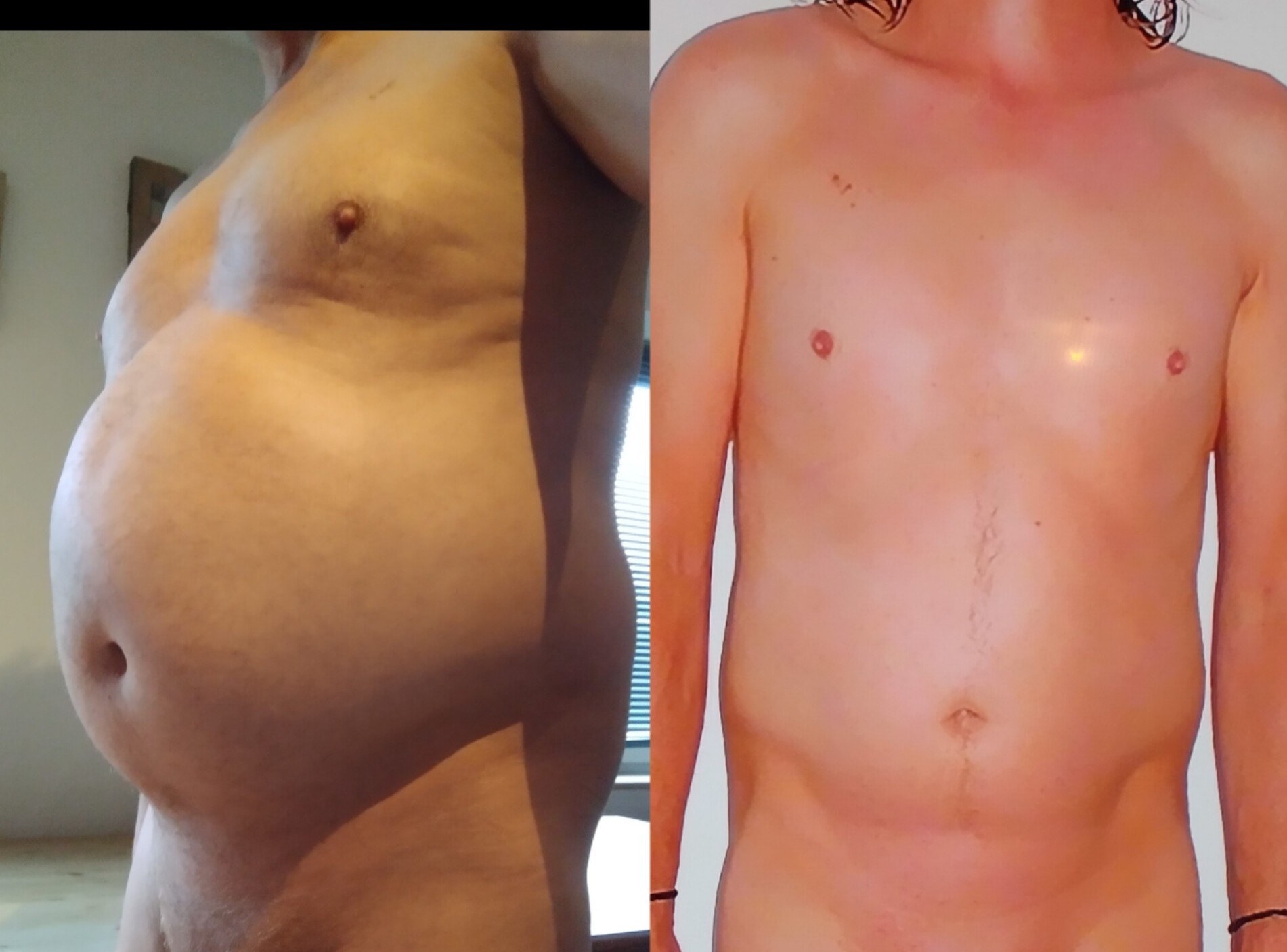Ich bin schon bei 106 kg angekommen.Wenn ich weiter so schnell zunehme,bin ich schnell wieder bei meinem alten Gewicht .Beim rechten Bild habe ich noch 65 gewogen.Hatte da schon 10kg zugenommen,sah aber noch ziemlich dünn aus.Ab 70 kg fing ich schon an dick zu werden.