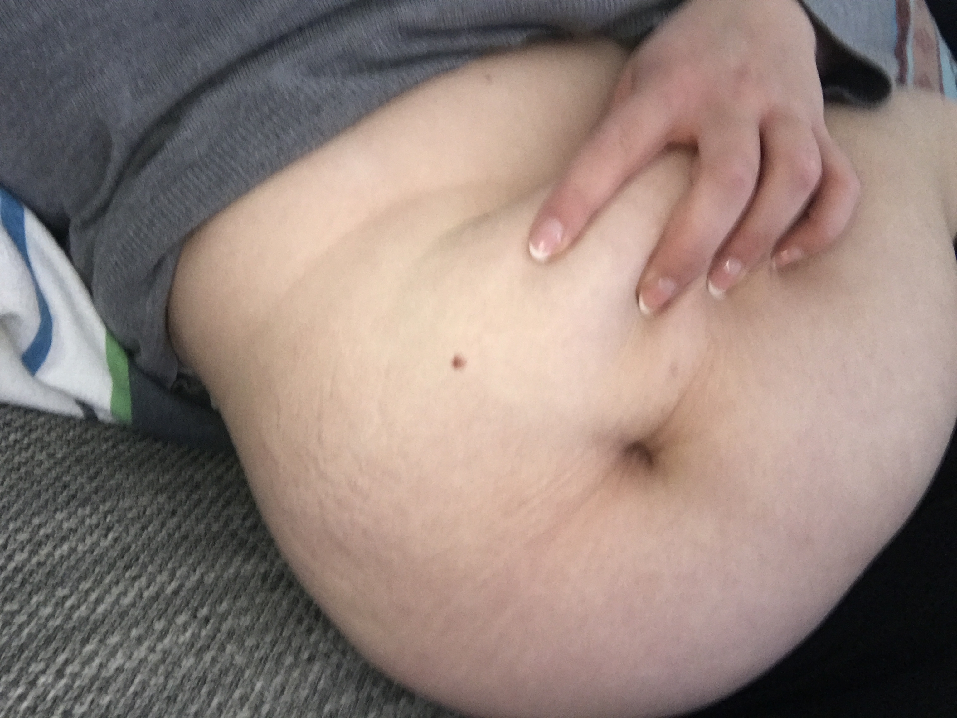 Schöne, fette Wampe mit tiefem Nabel und einer gepflegten Frauenhand: Ein saugeiler Anblick