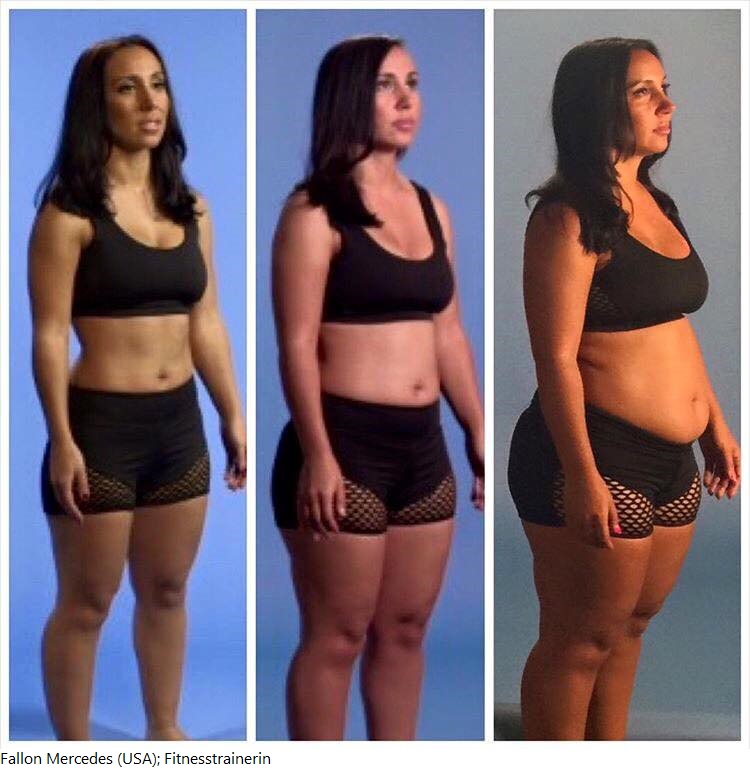 Eine Fitnesstrainerin, die sich für ein TV-Experiment über 20 kg angefressen (und auch wieder abgespeckt) hat.