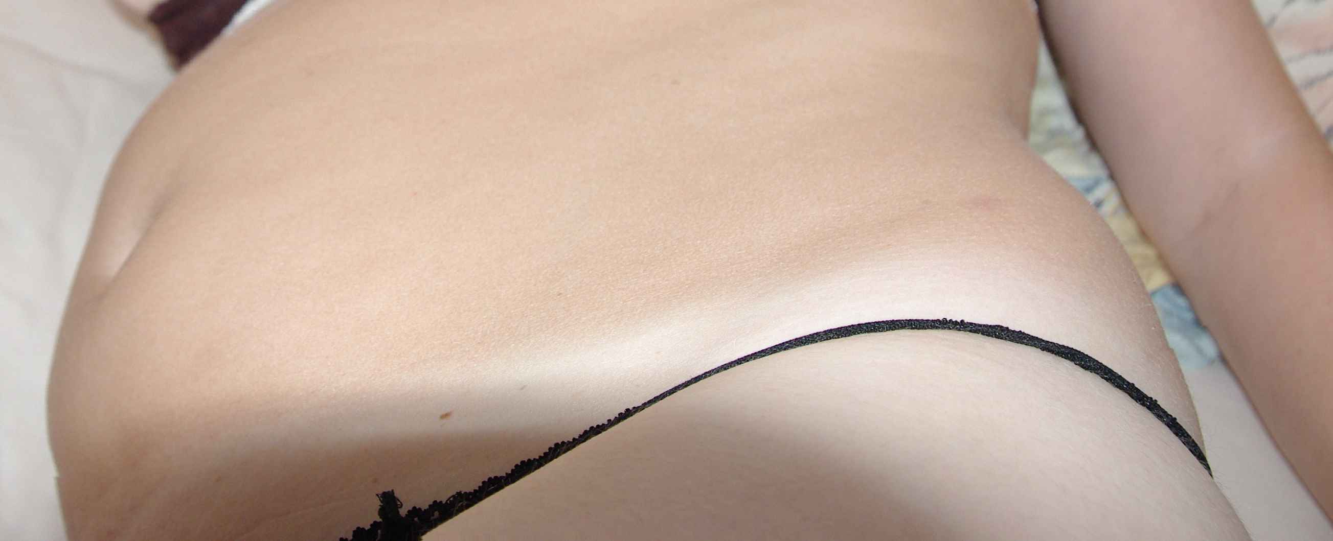 Viel dünner, da sieht man ja sogar noch, dass ich einen Stringtanga anhabe.