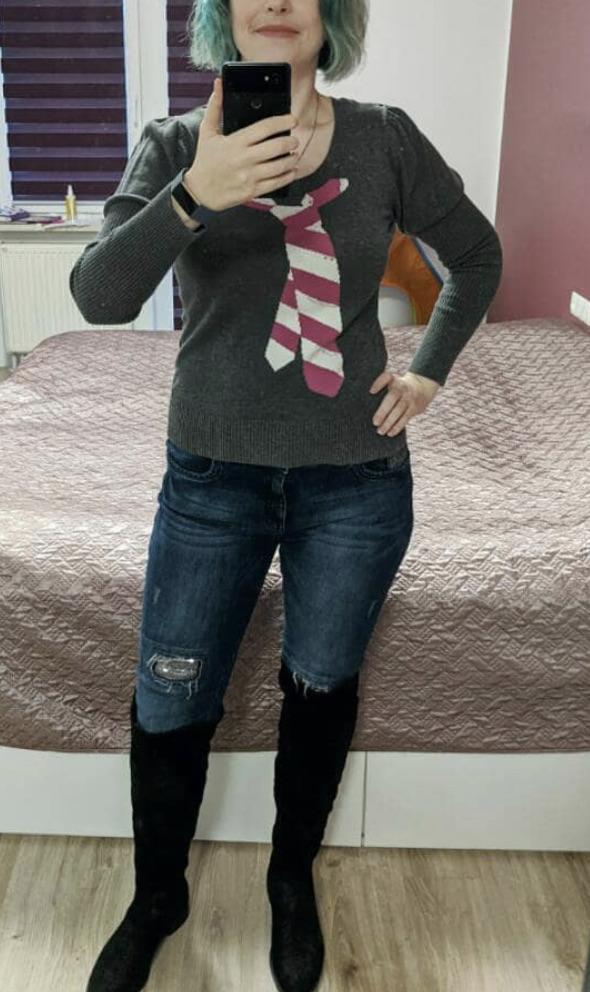 der Pullover hat ungefähr die selbe Größe wie der Weihnachtspullover. (zum Vergleich)