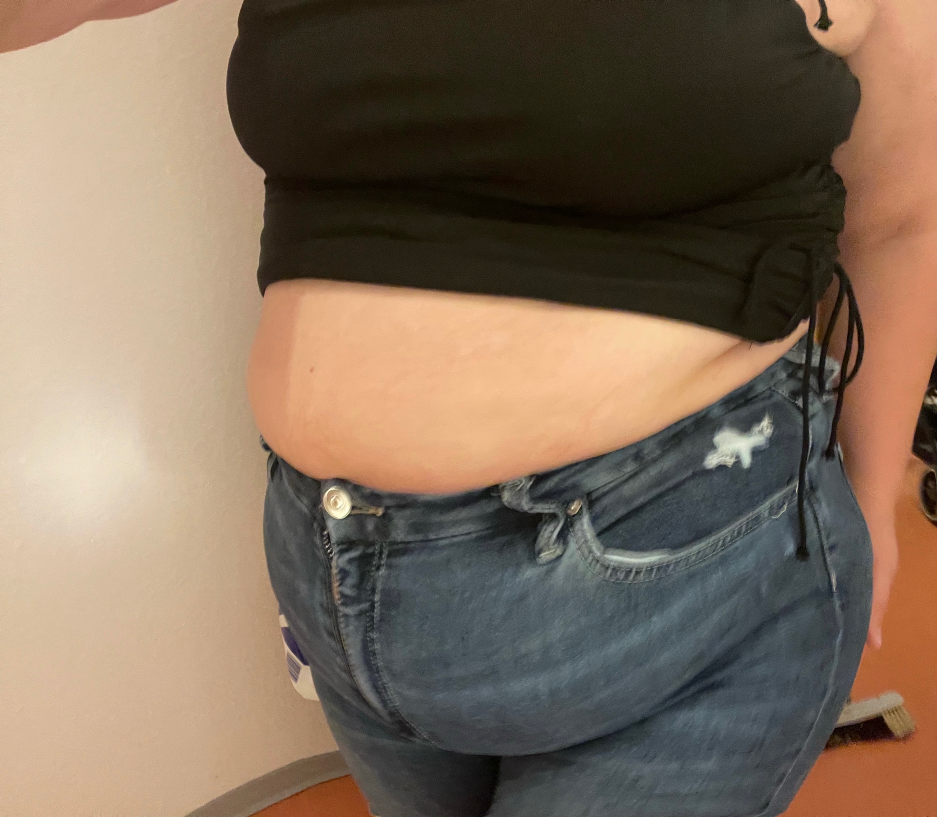 Ob es zu viel für dich ist musst du wissen. Ich finde deinen Körper schön. kannst ja den Hosenknopf öffnen und einen größeren Gürtel herumlegen damit es nicht so spannt