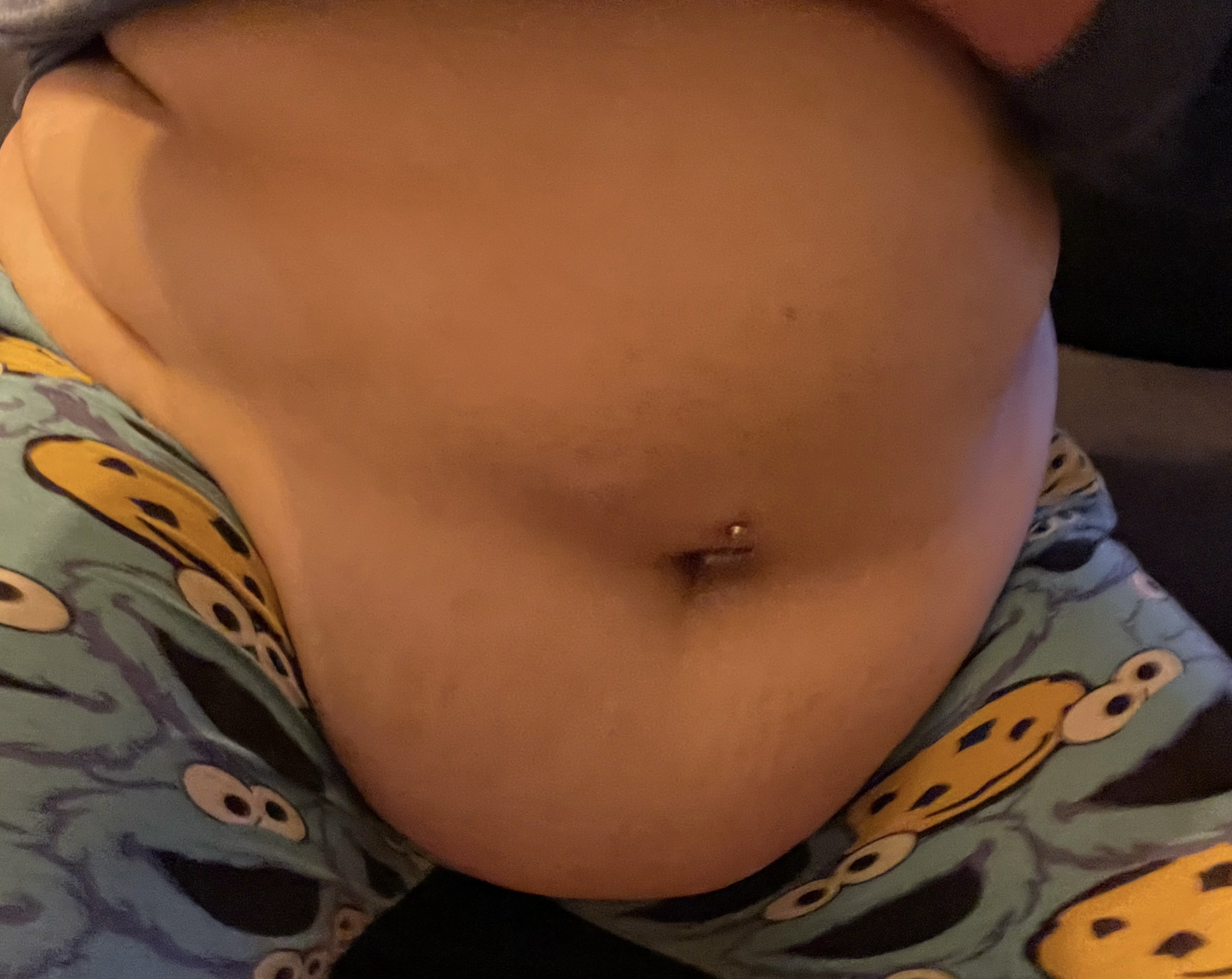 Das Krümelmonster als Beinkleid passt hier besonders gut zu dem niedlichen Speckbäuchlein. Es könnte sich fast um Arbeitskleidung handeln.