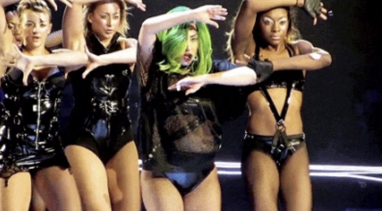 Lady Gaga sticht im Vergleich zum Background nicht nur durch die grünen Haare hervor. :-)