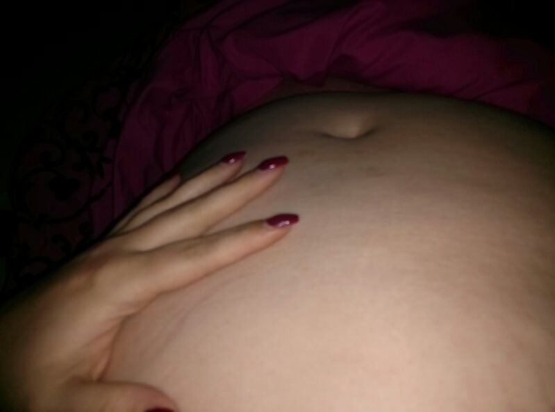 schöne schlanke hand auf dem kugelbäuchlein