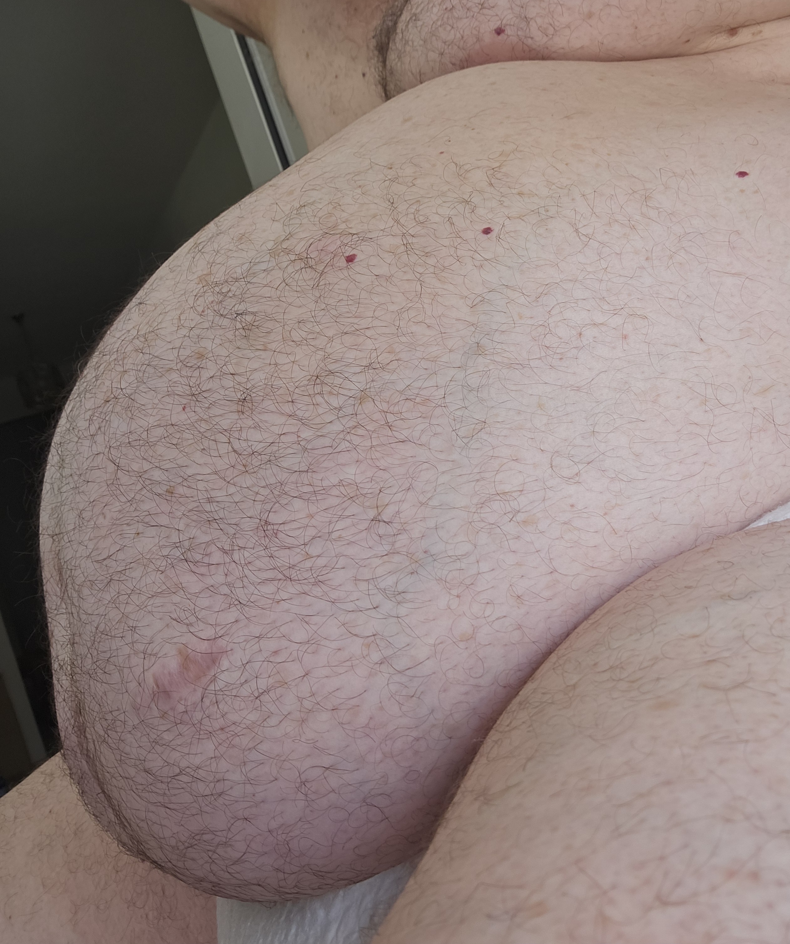 Tolles Foto, dein Bäuchlein sieht wirklich klasse aus, da kann man schon ein wenig neidisch werden. Bei der Größe und dem Gewicht bleibt einem Bäuchlein keine andere Wahl als etwas herunter zu hängen. Deine Oberschenkel stützen ihn ja ein wenig. Das fühlt sich bestimmt geil an.