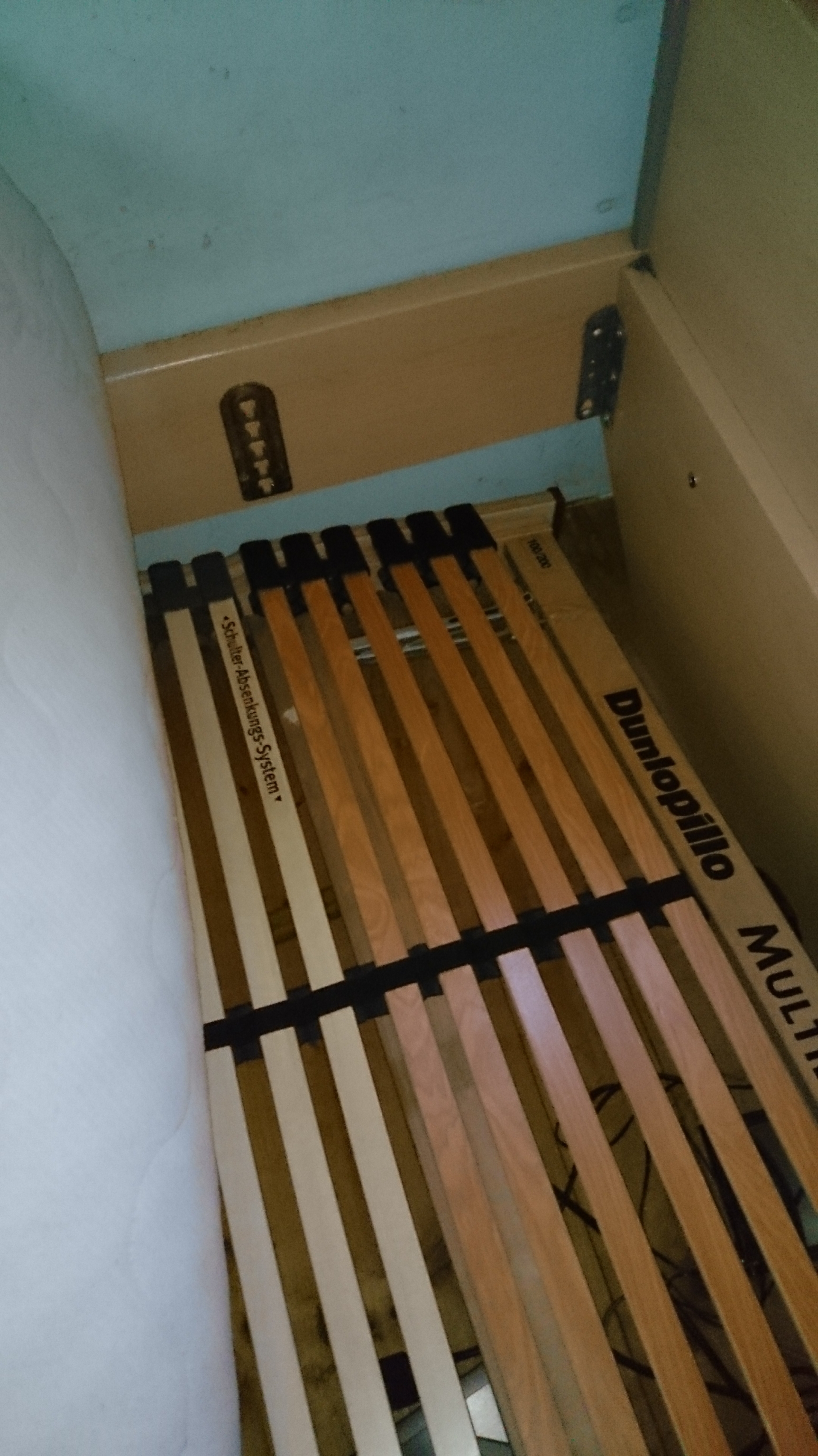 Wollte gerade ins Bett liegen, dann hat der Lattenrost nachgegeben -.-