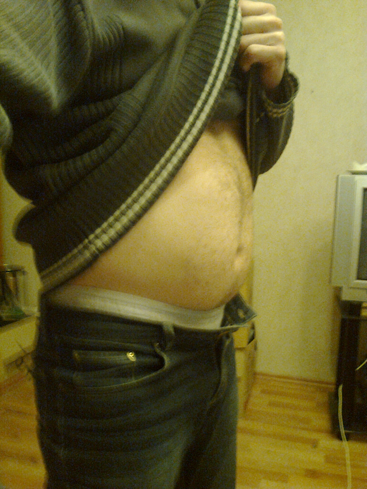 Na ja also wenn man sich vorm spiegel die Zähne putzt wackel die Haut schon etwas am Bauch aber das sit doch bestimmt auch bei Dir so oder ^^